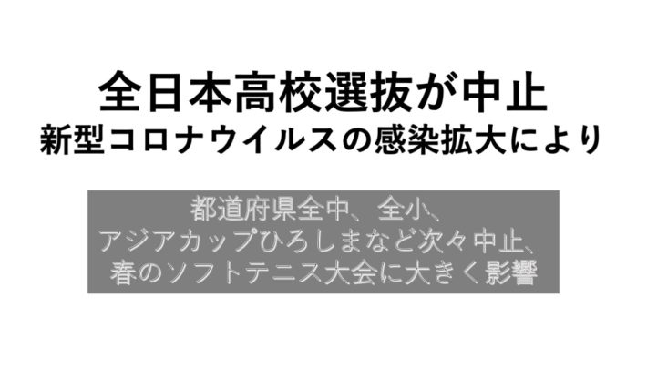 3月2日、新型コロナウイルスの感染拡大に鑑みて、全日本高校選抜ソフトテニス大会の中止が発表された(日本ソフトテニス連盟HP掲載)。