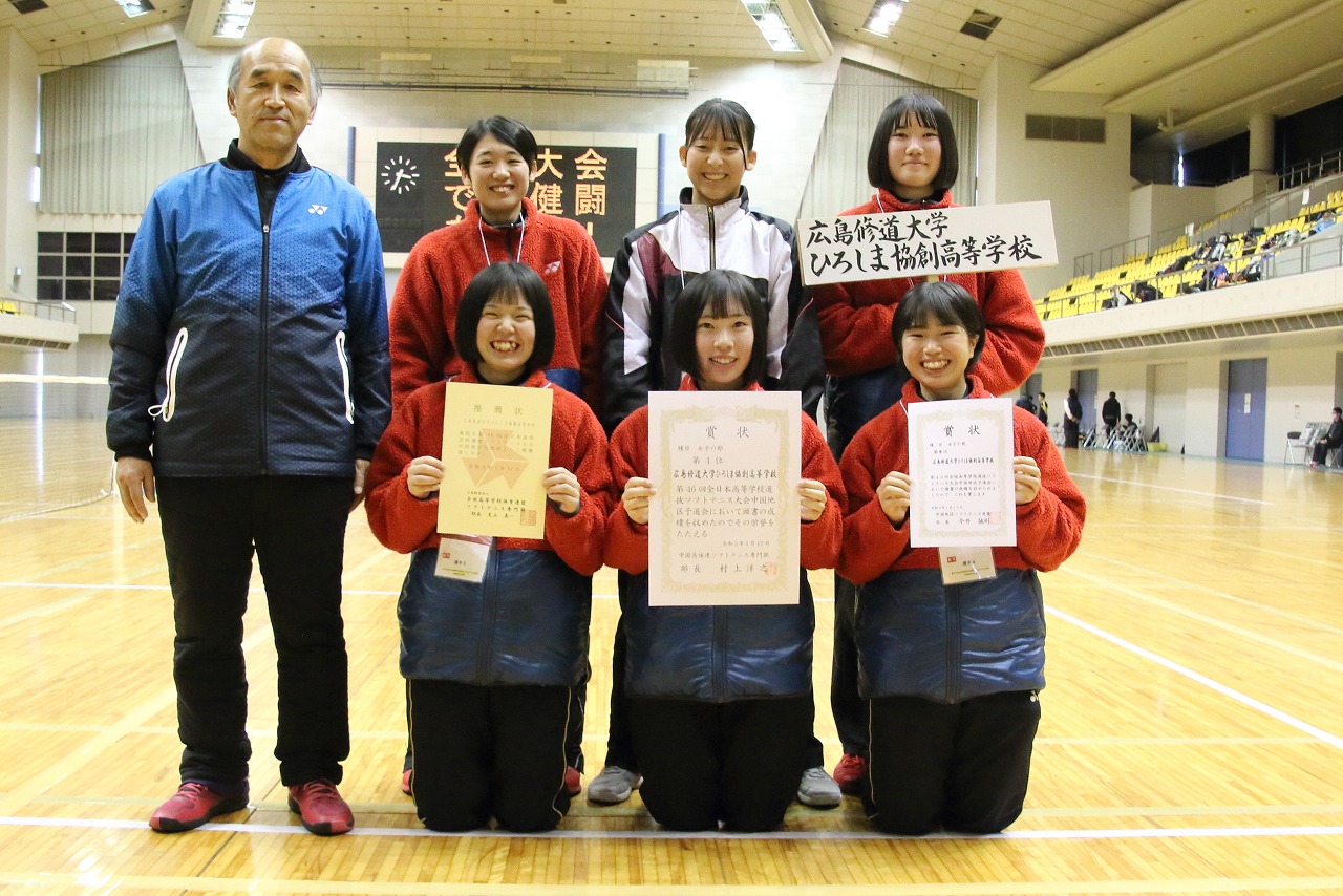 1月16、17日に福山通運ローズアリーナで『全日本高等学校選抜ソフトテニス大会中国地区予選会』が行われた。鳥取、島根、岡山、広島、山口の中国地区5県から各2校が出場。1位リーグ、2位リーグに別れ、全国を目指した。