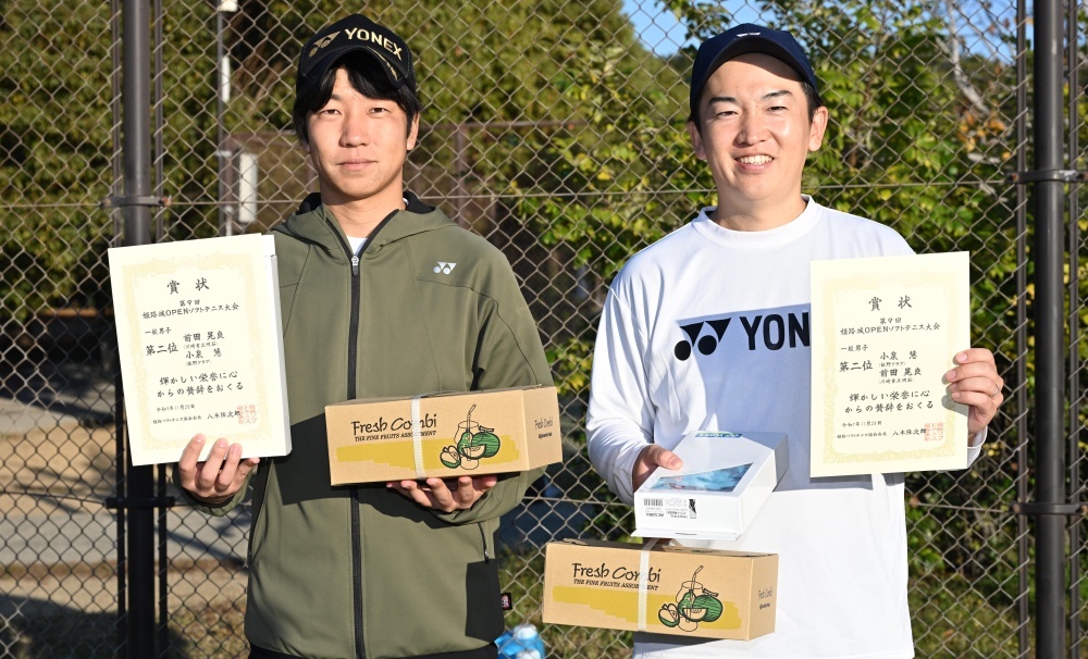 一般男子は兵庫県内の実業団、クラブ、大学、高校などを中心に34ペアが参加。準決勝で辻浦壱経/上通弘夢(川崎重工明石/関西学院大)との壮絶な打ち合いを制した半井大貴/池田和樹(高砂クラブ)と、ペアは違うが過去2回優勝している前田晃良(川崎重工明石)と小泉慧(龍野クラブ)が決勝戦に進んだ。