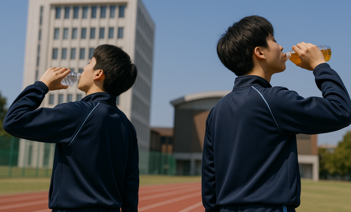 大学一回生らしき2人の男子が牛丼屋の前で立ち話をしている横で信号待ちをしていると、片手には食後に自販機で買ったとみられる緑茶とお水をそれぞれに持っていたのが見えました。