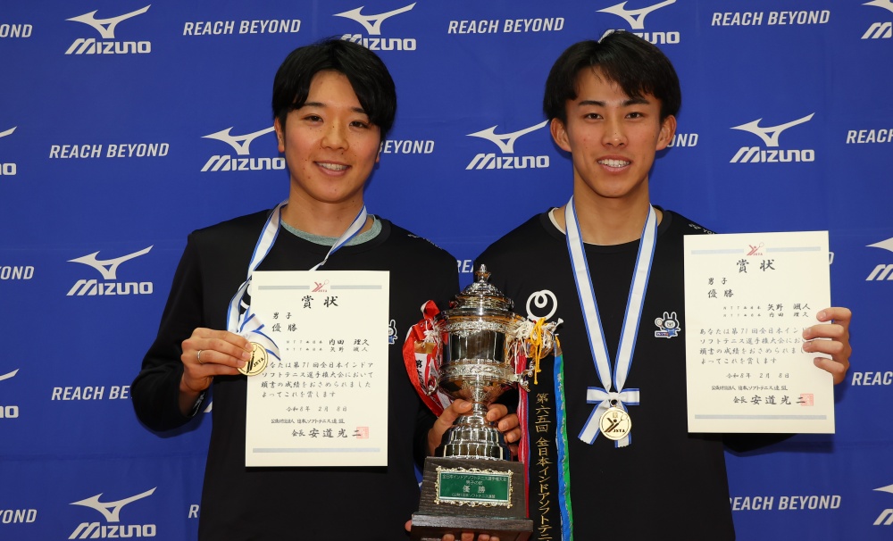 【全日本インドア】矢野颯人/内田理久(NTT西日本)が勝負強さを発揮して優勝! インドア大会3連勝、負けなし。女子は勝負所に自分たちのテニスを貫いた原口美咲/宮前希帆(ワタキューセイモア)が頂点へ!