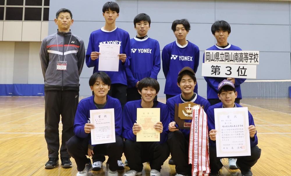 男子は1位校リーグで岡山理大附(岡山)が全勝優勝で6連覇とした。2位は岡山理大附には敗れたが、3勝を挙げた南陽工業(山口)が入った。さらに、1位リーグ3位の出雲北陵(島根)と2位リーグ優勝の古豪・岡山南(岡山)の対戦は②―0で岡山南が制して選抜大会出場を決めた。