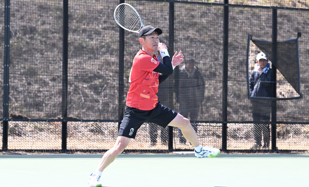 「ハードコートのシングルスで、この強風。慣れているベテランは戦術が立てやすいと思います。これだけ風が吹いていたら、コーナーも狙えない。打つところで少しズレたら、相手のコートでは1mズレます。だから、どうしても真ん中よりの配給になるし、強打もできない。サービスのトスは正確性が必要な上、ファーストサービスが入ったところで、有効打にはならないし、カットサービスでいいと思います」と長江光一(NTT西日本)。この日は丸山海斗戦のG2-2で肉離れの前兆があり、タイムアウトを取り、さらに試合を続けたが、G3-④で敗れた。